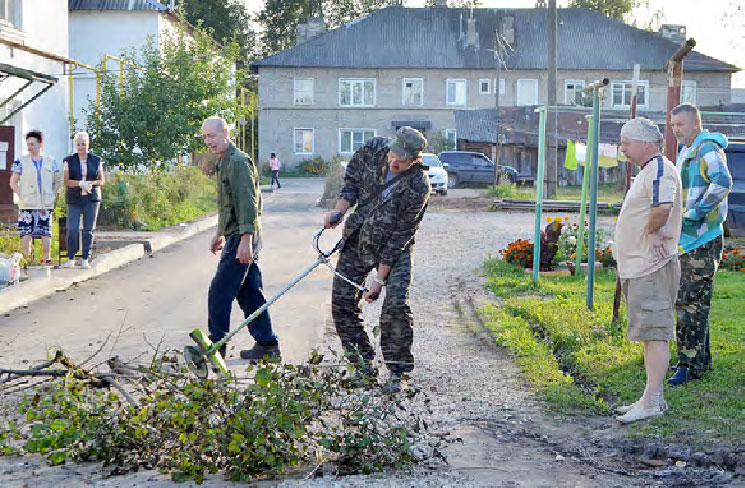 Людей собралось немало, многие пришли со своим инструментом: лопатами, ведрами, пилами, триммером. И работа закипела: на глазах исчезали пни, заросли кустарника, старые ветви и даже деревья; были убраны сухие цветы и трава. Все это складировали в одно место, откуда позже увезли. Елизавета Алексеевна, которая сама активно участвовала в субботнике, привезла рассаду многолетних цветов: лилейник, ирисы, хризантемы. Им нашлось место на освободившейся от мусора земле. Через три часа двор заметно посветлел, стал намного чище.
