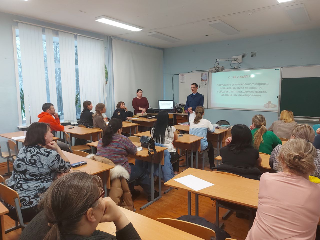 Евгений Александрович и Дмитрий Александрович в своих выступлениях рассказали о состоянии подростковой преступности и проводимой на территории района профилактической работы, акцентировав внимание родителей на значимость их роли и участия в ее осуществлении. В связи с актуальностью также доведена информация об ответственности несовершеннолетних за участие в несанкционированных массовых мероприятиях, распространение запрещенной информации, о безопасном поведение в информационно-телекоммуникационной сети «Интернет», а также сообщили о способах и мотивах вовлечения несовершеннолетних в деятельность деструктивных молодежных движений.
