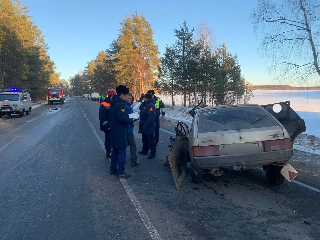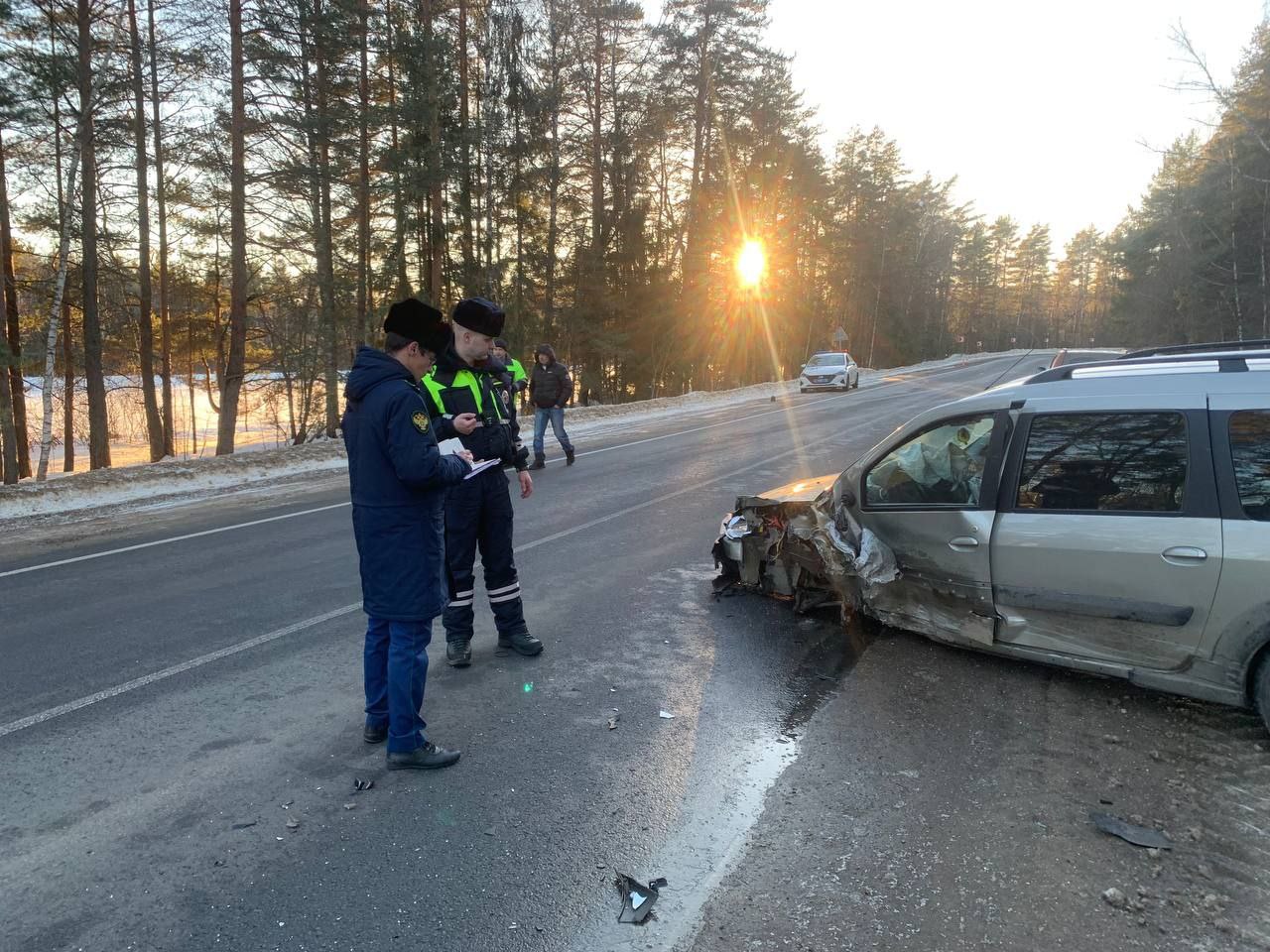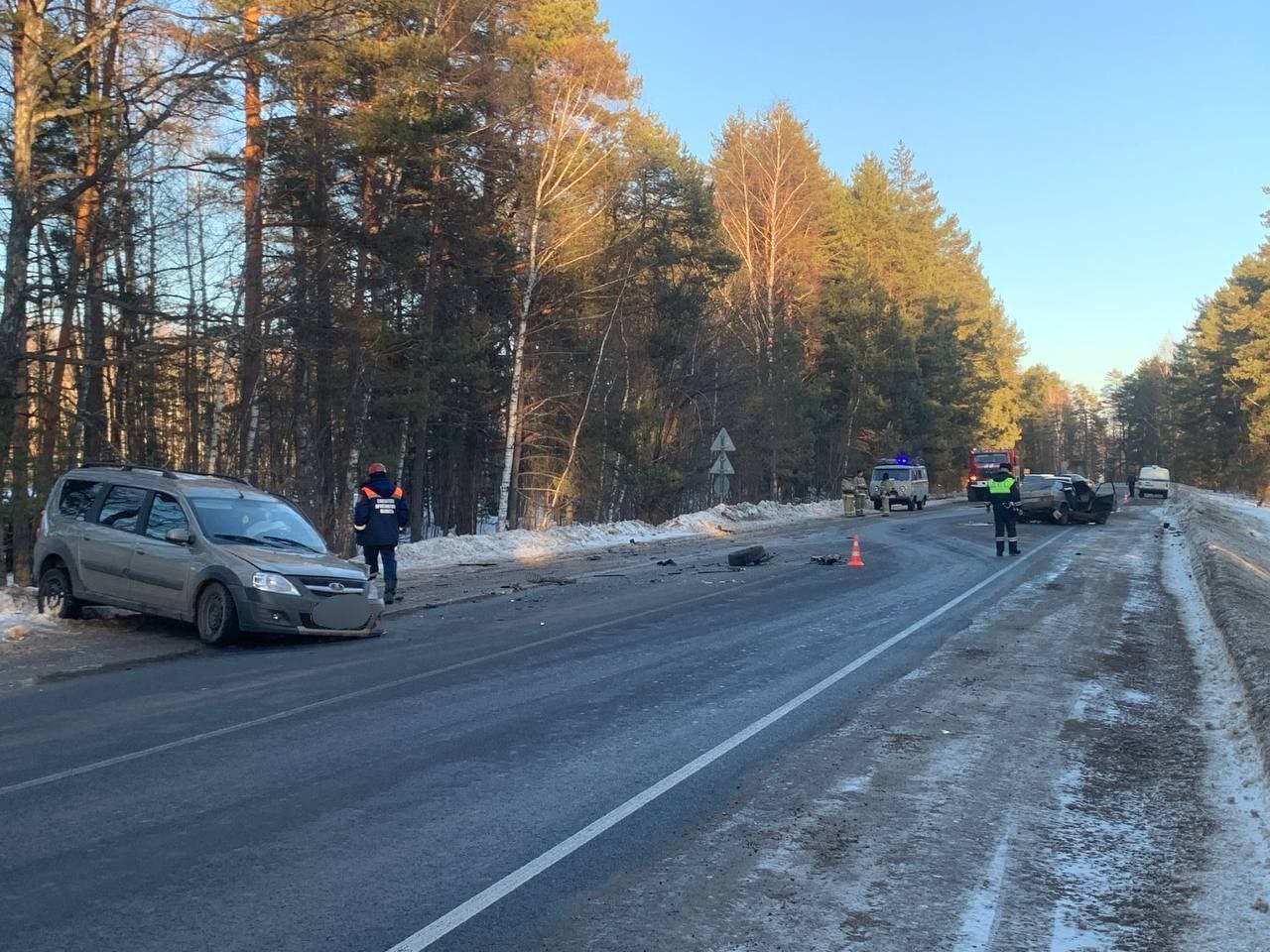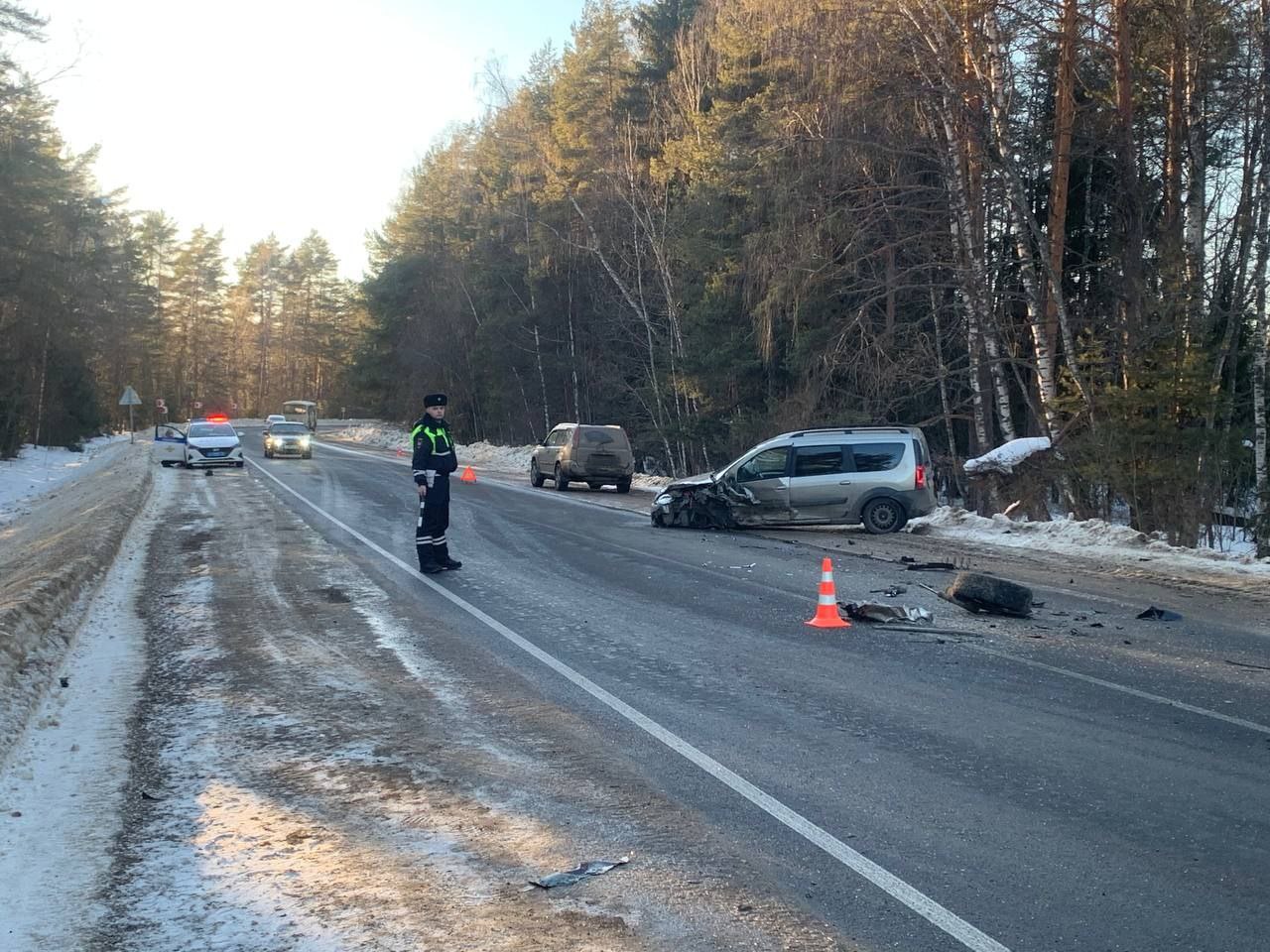 По предварительной информации, водитель автомобиля «ВАЗ-2109» в нарушение правил дорожного движения пересек сплошную линию дорожной разметки, выехал на полосу встречного движения и, не справившись с управлением, произвел столкновение с автомобилем «Лада Ларгус», двигавшимся во встречном направлении.