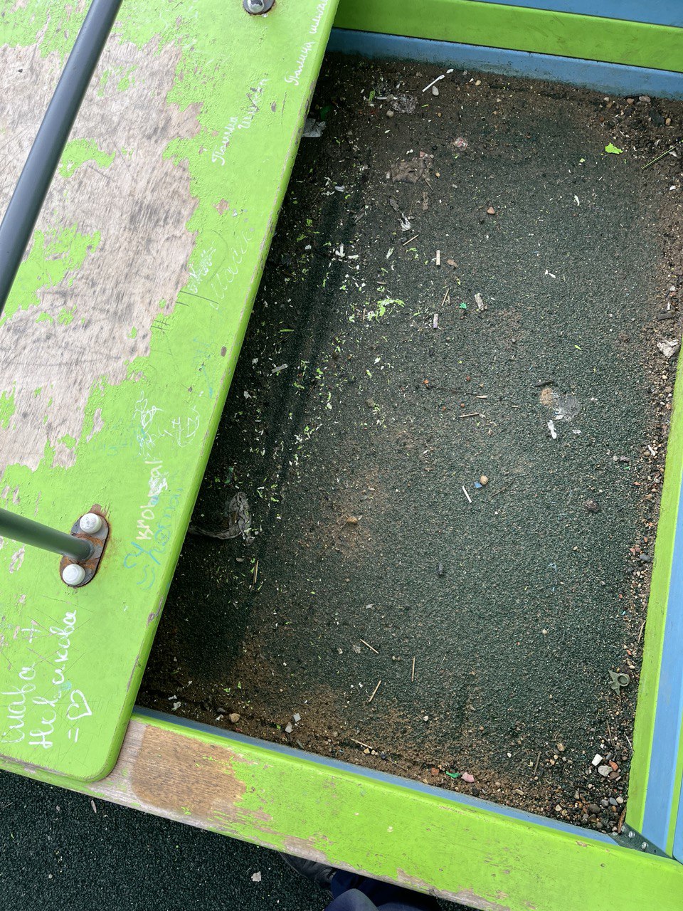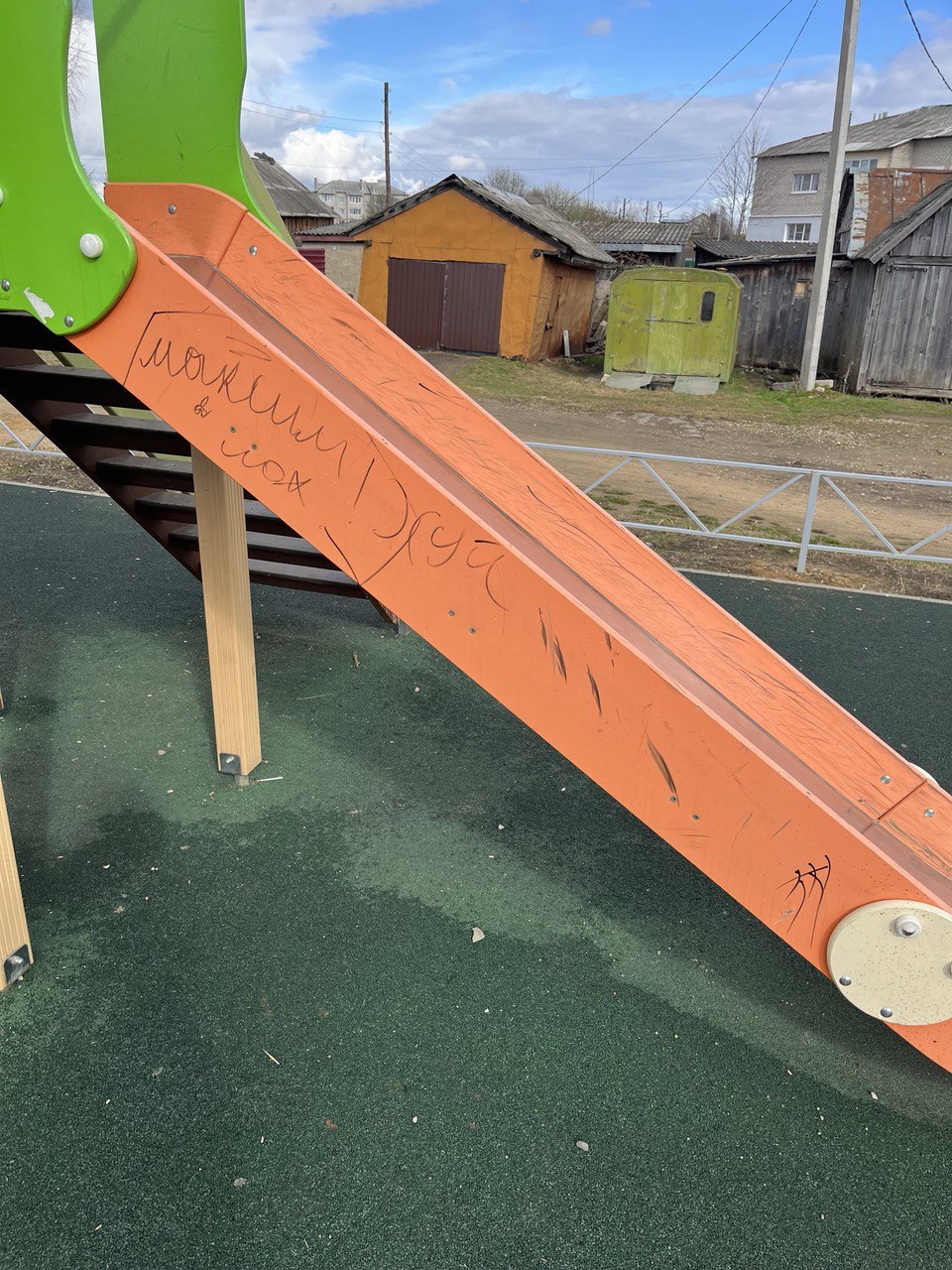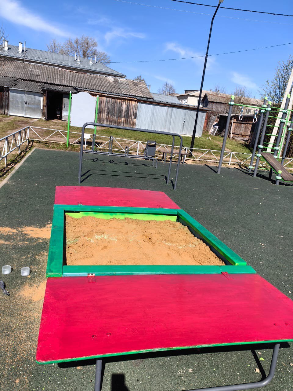 В ходе проверки установлено, что детская площадка на улице Луговая в поселке Борисоглебский не отвечает требованиям законодательства, а именно в песочнице отсутствует песок и накидан мусор, сломан крепеж ее крышки, на элементах детской площадки имеются надписи.